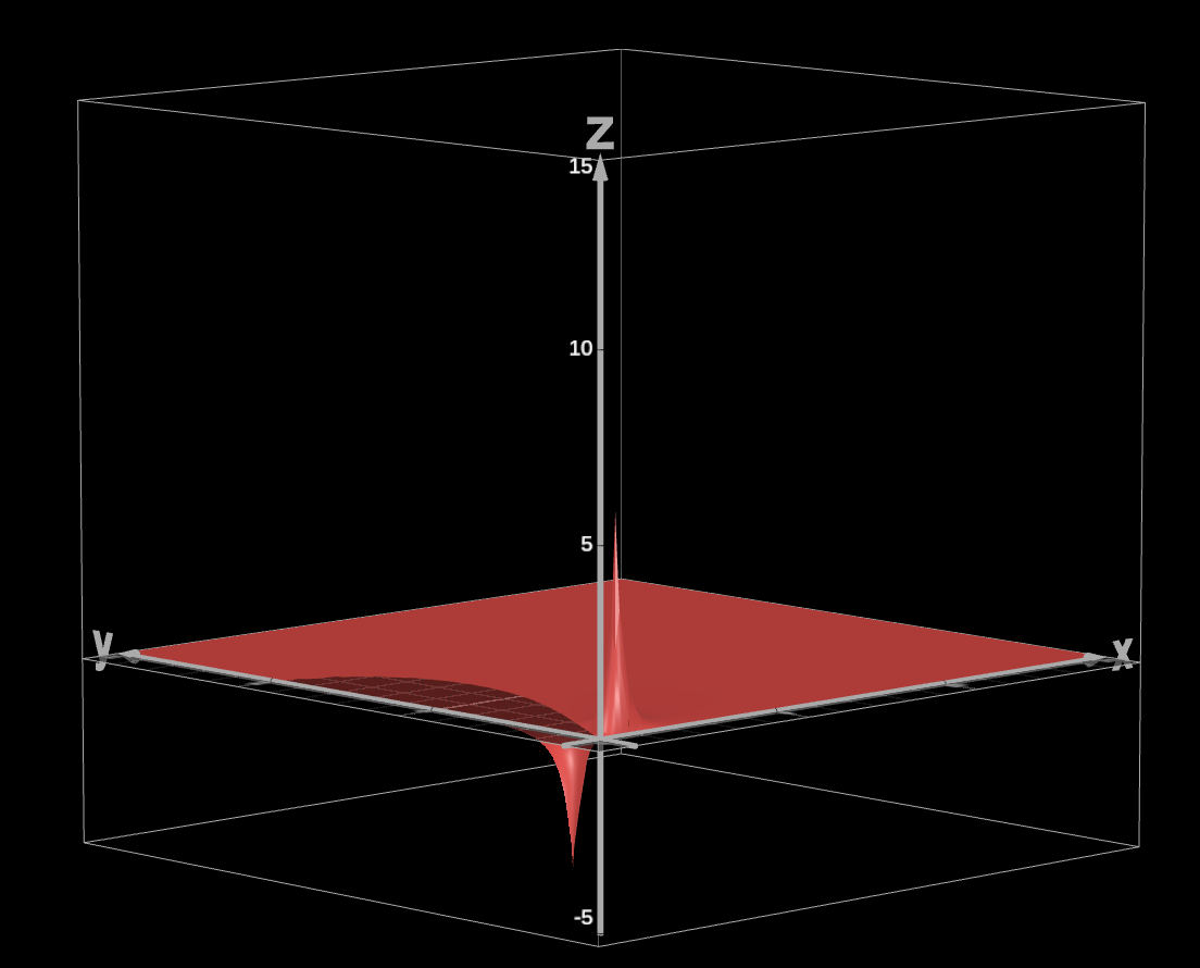 Behold! The epic closed form solution to the problem. My mind was blown away by how such a complicated series could be reduced to a closed form. The final solution looks cool – which, let’s be honest, is all we care about – but is also surprisingly well-behaved. There’s a singularity at (\rho',\phi') but, other than that, the function is everywhere finite and continuous for 0\le\phi\le\beta and 0\le\rho<\infty
